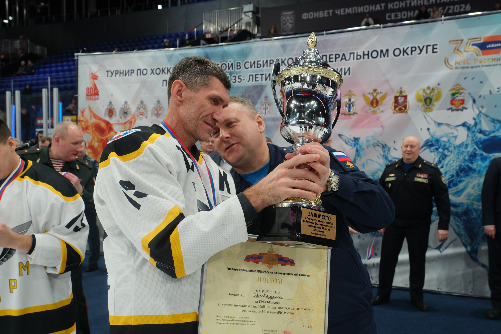 Финальные матчи турнира, приуроченного к 35-летию создания МЧС России и Дню спасателя, прошли на ледовой «Сибирь-Арене».
