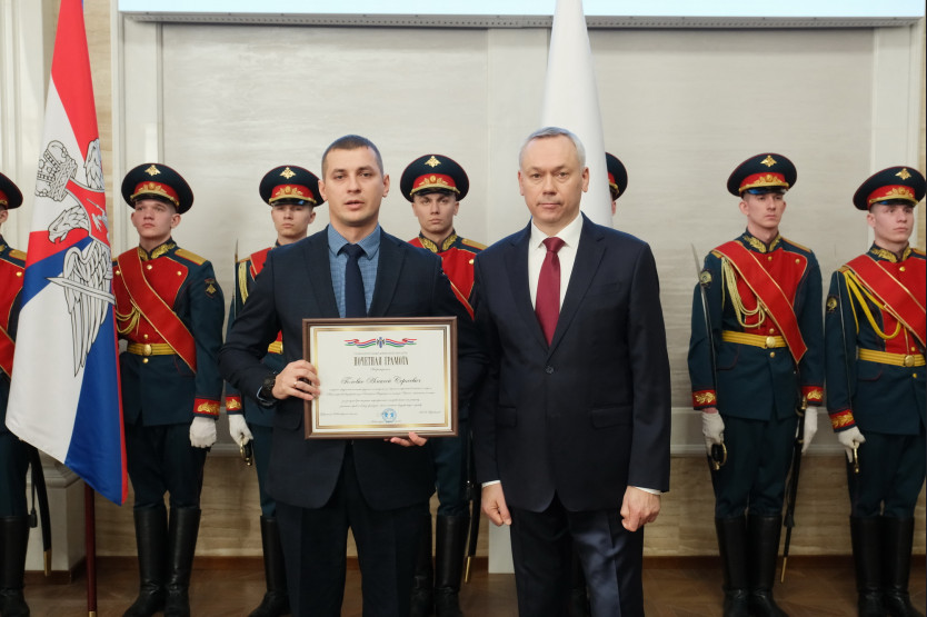 В ходе церемонии Андрей Травников вручил орден Мужества, медали Покрышкина, Почётные грамоты, Благодарности, Благодарственные письма Губернатора Новосибирской области.