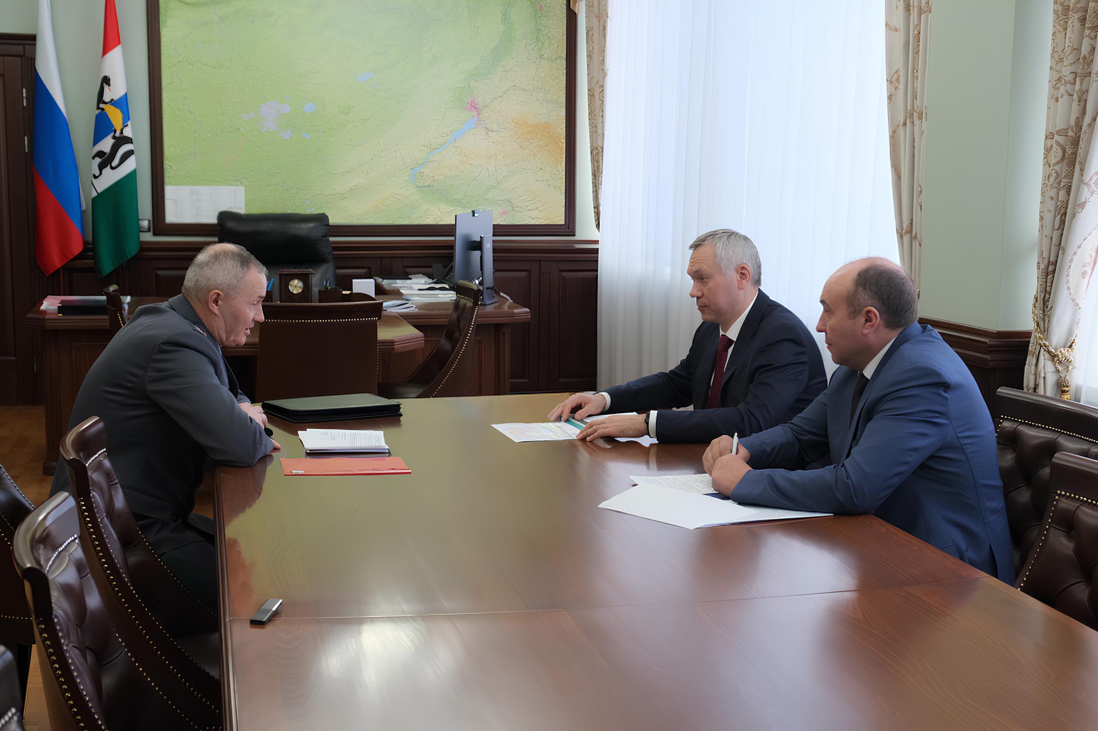 Губернатор Новосибирской области Андрей Травников провёл рабочую встречу с руководителем Cибирского межрегионального управления Федеральной службы по ветеринарному и фитосанитарному надзору Александром Баёвым.