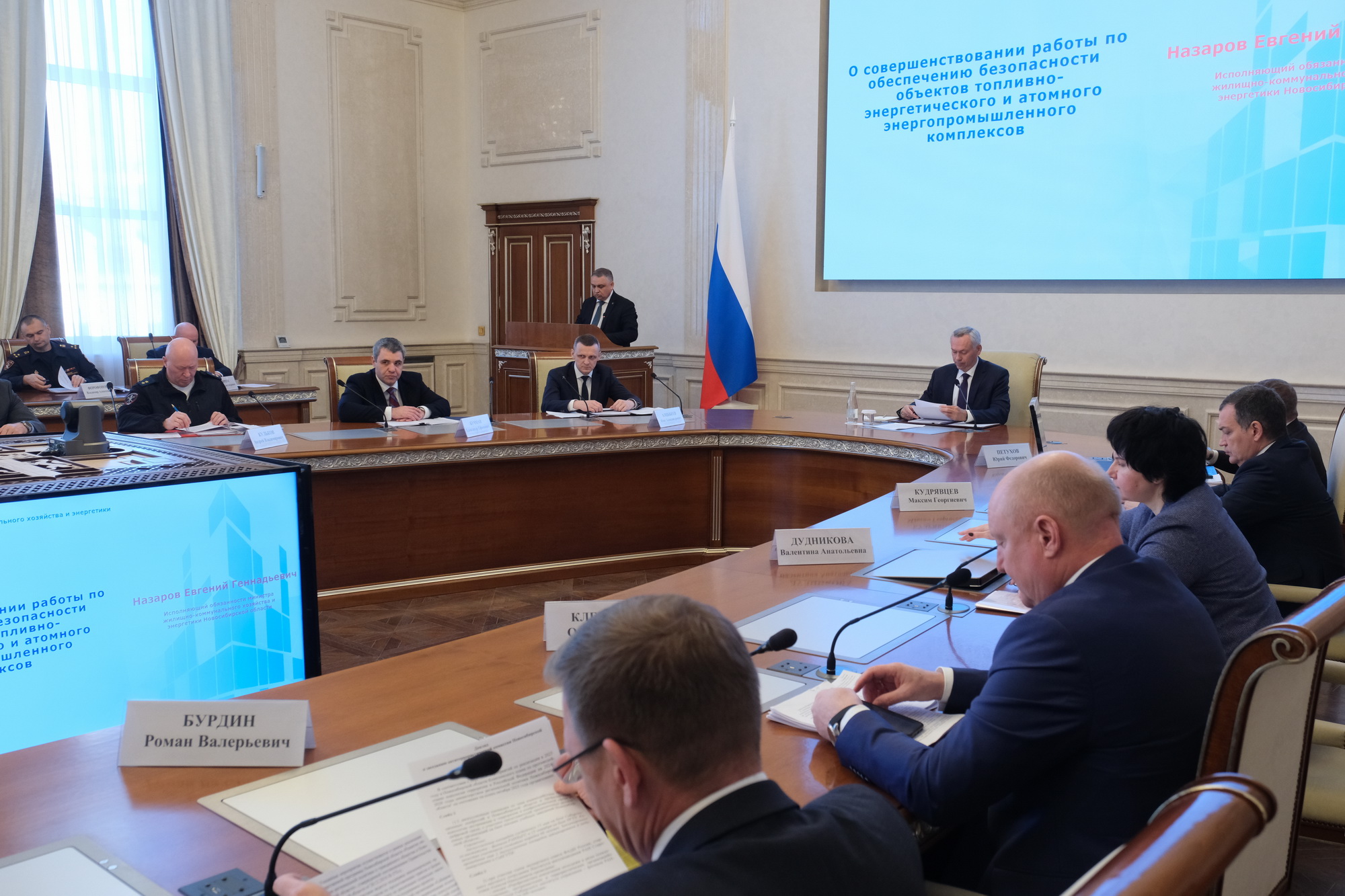 Исполняющий обязанности министра ЖКХ и энергетики региона Евгений Назаров доложил о состоянии защищенности и реализуемых мерах объектами ТЭК региона по обеспечению безопасности от внешних угроз. О результатах контрольно-надзорной деятельности и проводимой с субъектами ТЭК информационной работы по обеспечению безопасности предприятий энергетики доложила начальник отдела государственного контроля Управления Росгвардии по Новосибирской области Светлана Бухарина.